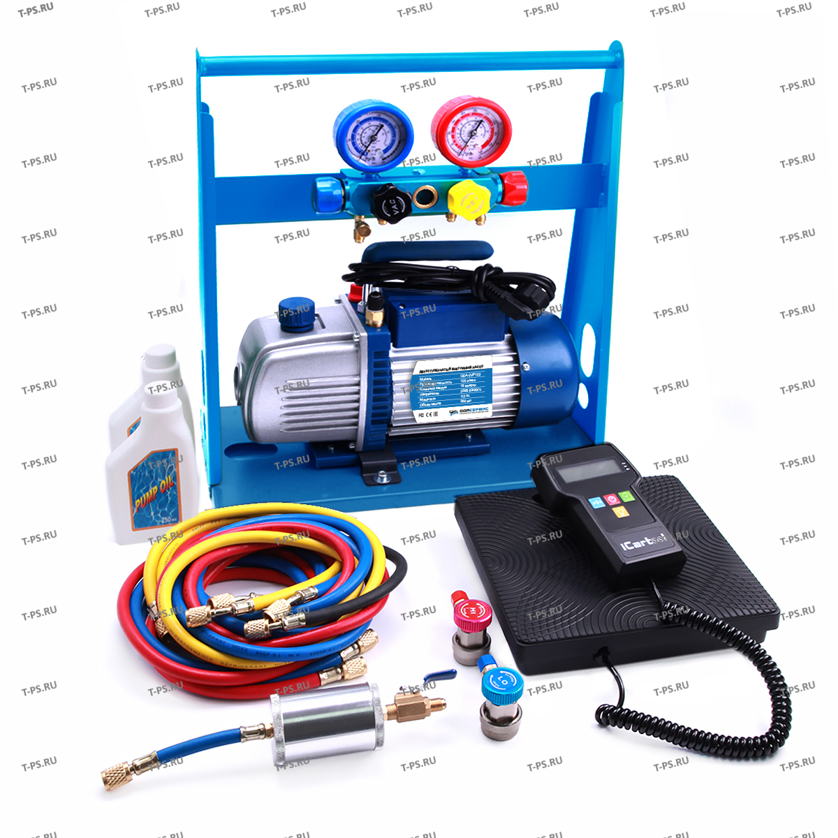 ОДА Сервис AC-2026 ручная заправочная станция для кондиционеров. Способна диагностировать и заправлять автокондиционеры, климатические установки и другие системы, работающие на хладагенте R134A. Установка создана на базе 4-х вентильного коллектора и двухступенчатого вакуумного насоса с производительностью 120 л/мин. В комплект также входят 4 заправочных шланга различной длины ( 3м - 2шт., 1,5м - 1шт., 0.5м - 1 шт.). Для удобства транспортировки и хранения все компоненты установки установлены на металлической раме. Дополнительно в комплект входят: электронные весы, заправочный цилиндр для масла и набор Г-образных быстросъемных разъемных соединений. С помощью данного оборудования для заправки кондиционеров вы сможете выполнять след. функции: Вакуумирование (на манометрах есть шкала для измерения вакуума) Проверка на герметичность под вакуумом Заправка системы новым маслом или УФ- красителем Заправка хладагента Проверка утечек в системе кондиционирования под давлением Проверка работоспособности системы по показаниям манометров ( при проверке, краны на коллекторе обязательно должны быть закрыты) Технические характеристики Вакуумная помпа Двухступенчатая 120 л/мин Конечный вакуум 15 микрон Длина шлангов 3 метра Электропитание 220В/50Hz Комплектация Заправочная станция Комплект Г-образных быстросъемных адаптеров Заправочный цилиндр Заправочные шланги 4 штуки Масло для вакуумной помпы 2 шт Электронные весы Инструкция пользователя Упаковка
