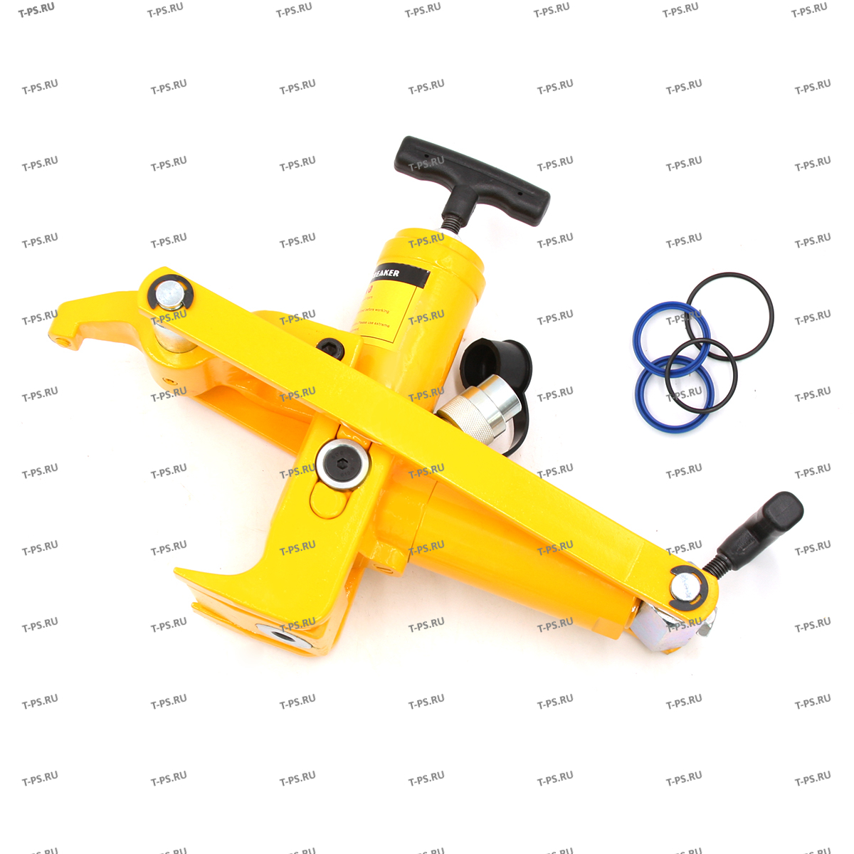 Ручной гидравлический отбортовыватель применяется для разборных дисков, состоящих из 3 частей. Отбортовыватель используется для демонтажа колец и дисков, применяемых на шинах карьерной спецтехники, тракторов, например, Caterpillar, Case и других производителей. Также используется для замены шин на погрузчиках. Инструмент можно использовать, не только в ремонтных зонах спецтехники, но и в полевых условиях. Для работы с гидравлическим отбортовывателем необходим только гидравлический насос с РВД и подходящим адаптером для коммутации гидроцилиндра и насоса (данные компоненты приобретаются отдельно). Гидравлический отбортовыватель незаменим при демонтаже закисших и прикипевших колец. Использование данного приспособления сокращает трудозатраты на шиномонтаж, как минимум в 5-10 раз и существенно увеличивает безопасность производимых работ. Современные бескамерные крупногабаритные шины практически невозможно демонтировать с диска без применения специализированного оборудования, такого как гидравлический отбортовыватель. Наличие такого оборудования в ремзоне так же является требованием № 116-ФЗ «О промышленной безопасности опасных производственных объектов». Гидравлический отбортовыватель применяется автономно, как альтернатива стационарным шиномонтажным стендам, а также совместно с шиномонтажными стендами в случае, если стенд не может самостоятельно оторвать прикипевшую шину от диска. Особенности гидравлического отбортовывателя - Демонтаж шины происходит очень бережно, без повреждения посадочной зоны. Для этого сильное давление (около 10 тонн) оказывается не на саму шину, а на наружные кольца обода. - Позволяет демонтировать даже очень сильно прикипевшую покрышку - Стоимость отбортовывателя значительно меньше стоимости шиномонтажного стенда для спецтехники - Позволяет производить демонтаж крупногабаритных шин в любых условиях, будь это ремзона или карьер со спецтехникой Основные элементы гидравлического отбортовывателя - Зажимной кулачок - Толкатель - Упор - Гидроцилиндр с ходом 95 мм - Рукоятки с эргономическим дизайном Технические характеристики - Усилие гидроцилиндра: 10 тонн - Максимальное давление в гидросистеме: 700 Бар - Ход штока: 95 мм - Применяемость для дисков: 25-51 дюймов - Вес: 12,5 кг Применение гидравлического отбортовывателя - Карьерная техника - Спецтехника - Погрузчики - Трактора - Сельхозтехника - Лесозаготовительная спецтехника - Дорожная техника