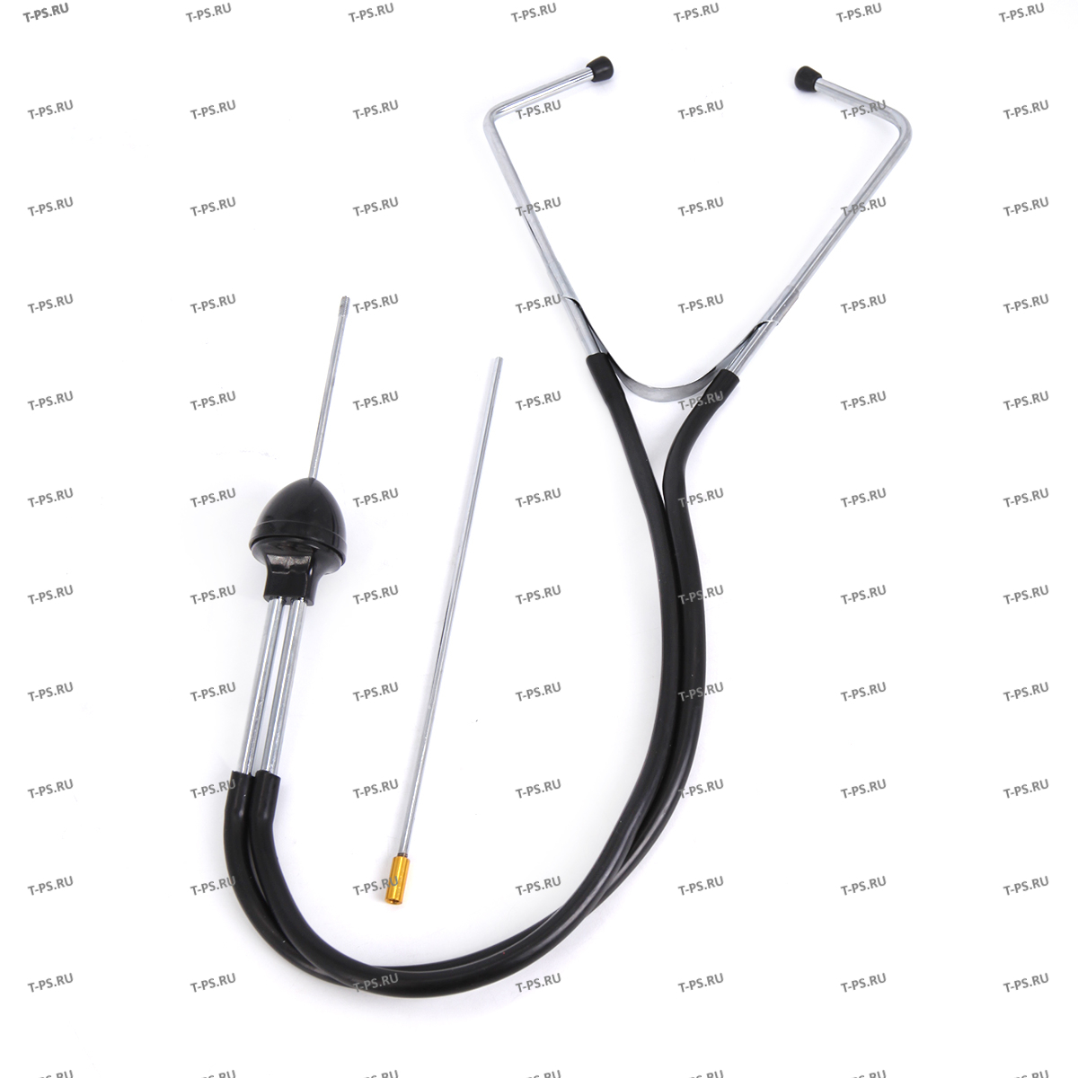 Стетоскоп механика - прибор для быстрого и точного определения скрытых дефектов различных агрегатов автомобиля. С помощью стетоскопа определяют неисправности на рабочем двигателе прослушивая его для выявления посторонних шумов или звона работы двигателя и других агрегатов автомобиля Преимущества: - дополнительный удлинитель (входит в комплект), - удобные оливы, изолирующие внешние звуки, - обрезанная акустическая головка. Применяемость стетоскопа механика: - дорожные испытания автомобилей, - проверка топливных систем впрыска топлива, - диагностика ходовой части, - быстрая проверка двигателей автомобилей, - тестирование исполнительных механизмов. Стетоскопом называется специальное диагностическое устройство, которое предназначено для определения технического состояния механизмов и деталей, находящихся в двигателе, при помощи виброакустического метода работы. Существует два вида стетоскопов: электронный и механический. Самыми простыми являются механические стетоскопы, они относятся к «бюджетному» типу, которыми пользуются обычные автолюбители. Электронный стетоскоп считается более качественным прибором, у него присутствует усилитель звука, а также более чувствительный микрофон. Принцип действия основывается на усилении шума, получении его по разным каналам устройства, определении его характера и источника.