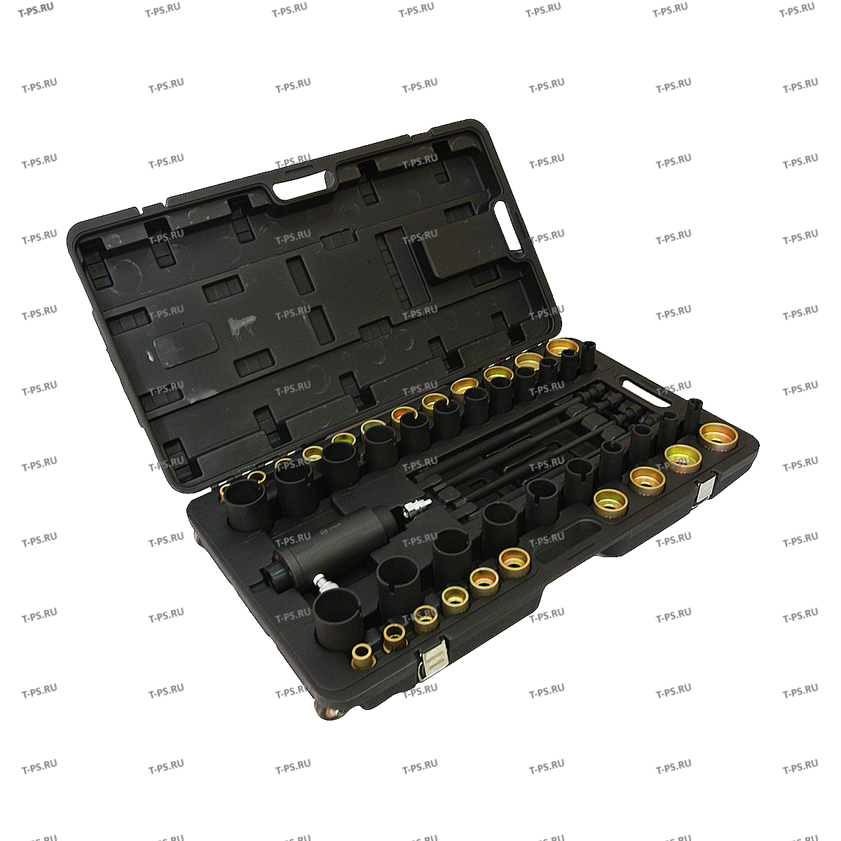 Набор съемников сайлентблоков гидравлический универсальный, усилие до 10 тонн. В комплект входит большой набор оправок разных размеров, благодаря чему набор может применяться практически к любым маркам автомобилей. Комплект можно использовать без гидравлического привода – с помощью ручного насоса или через автономную маслостанцию. Насос в комплект не входит, поставляется отдельно. Для удобства перемещения чемодан снабжен прочными колесами. Важные рекомендации: Для поддержания съемника в рабочем состоянии требуется регулярная смазка силового винта. Характеристики: - Ширина: 0.53 м - Высота: 0.16 м - Длина: 0.92 м - Вес: 31.6 кг Комплектация: - Глубокие оправки длиной 110 мм: D26xd18, D28xd20, D30xd22, D32xd24, D34xd26, D36xd28, D38xd30, D40xd32, D42xd34, D44xd36, D46xd38, D48xd40, D50xd42, D52xd44, D54xd46, D56xd48, D58xd50, D60xd52, D62xd54, D64xd56, D66xd58, D68xd60 – 22 шт., - Короткие оправки длиной 40 мм: D26xd18, D28xd20, D30xd22, D32xd24, D34xd26, D36xd28, D38xd30, D40xd32, D42xd34, D44xd36, D46xd38, D48xd40, D50xd42, D52xd44, D54xd46, D56xd48, D58xd50, D60xd52, D62xd54, D64xd56, D66xd58, D68xd60 – 22 шт., - Силовые винты 10, 12, 14, 16 мм – 4 шт., - Гидроцилиндр – 1 шт., - Штуцер – 2 шт.