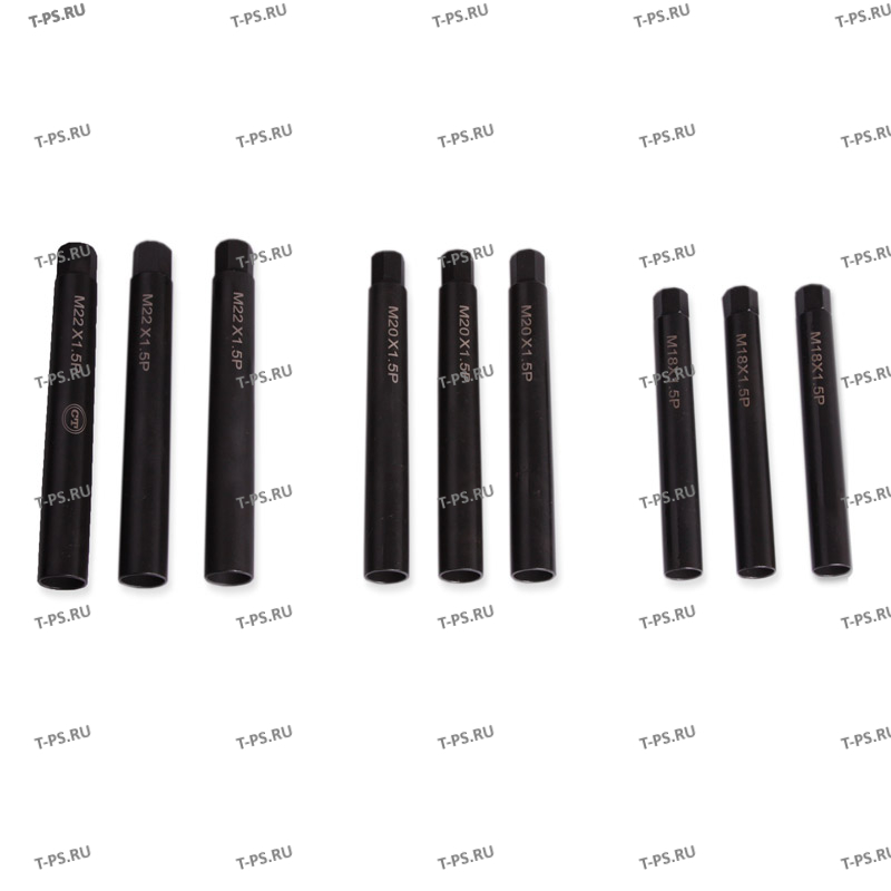 Направляющие штифты для установки колес - Назначение инструмента для грузовоиков: центровка внешнего диска колеса. - Применение направляющих штифтов для установки колес: грузовые автомобили и коммерческий транспорт. Комплектация набора для установки колес - Штифт с внутренней резьбой М18х1.5 - 3шт. - Штифт с внутренней резьбой М20х1.5 - 3шт. - Штифт с внутренней резьбой М22х1.5 - 3шт. - Кейс для хранения и транспортировки.