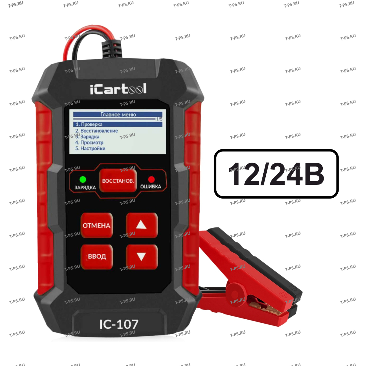 iCartool IC-107 - многофункциональный тестер для обслуживания вашего аккумулятора сочетающий в себе 3 функции. С его помощью вы можете:проверить уровень заряда и общее состояние аккумулятора, провести тесты системы заряда и пуска двигателя зарядить аккумулятор восстановить аккумулятор (устранить сульфатацию пластин). Тестер предназначен для стартерных АКБ напряжением 12 и 24 В. Устройство поддерживает работу со всеми основными типами АКБ, в том числе EFB и литиевыми батареями и позволяет продлить срок их службы. Функциональные возможности тестера АКБ IC-107 12В/24В: - Тестирование АКБ - анализ состояния АКБ, расчет фактических пусковых характеристик АКБ в холодном состоянии и оценка ресурса батареи. В данном режиме пользователь получает все аналитические данные для технического обслуживания АКБ. Тестер заранее информирует о необходимости замены батареи в результате выработки ее ресурса. - Тест системы пуска двигателя - применяется для проверки и анализа работы стартера двигателя. На основании фактического значения стартерного тока и напряжения можно оценить исправную работу электродвигателя стартера. - Тест системы зарядки – проверка и анализ работы системы зарядки АКБ, включая генератор, выпрямительный узел, диоды и др. Он позволяет определить нормальное выходное напряжение генератора, исправность выпрямительных диодов, отсутствие перезарядки или неполного заряда АКБ, в результате которого сокращается срок службы АКБ и других электрических приборов автомобиля. - Восстановление АКБ – позволяет восстановить потерянные характеристики аккумулятора. Тестер использует импульсное напряжение определенной частоты для обнаружения сульфатации батареи или расслоения электролита, а затем запускает процесс очищения пластин аккумулятора от сульфата свинца, который образуется на них в процессе неправильной зарядки, неверной эксплуатации или просто от старости аккумуляторной батареи. Таким образом можно значительно повысить ресурс АКБ, продлить срок его эксплуатации, а значит, и сэкономить деньги на покупке новой аккумуляторной батареи. - Зарядка АКБ - производится зарядка аккумулятора током до 5А для АКБ 24В, 10А для АКБ 12В. На АКБ подается ток такой силы, сколько позволяет зарядное устройство или может принять АКБ, но не превышающий 10% от номинальной емкости АКБ (Ah), до тех пор, пока напряжение батареи не достигнет заданного максимального уровня (25,5В/ 14,5В). Когда напряжение достигает максимального уровня (и больше не растёт), зарядное устройство переходит в режим поддержания заряда. Особенности тестера АКБ IC-107 12В/24В - Подходит для всех свинцово-кислотных АКБ, в том числе АКБ AGM плоские и спиральные, GEL и EFB аккумуляторы для грузовиков, литиевые АКБ, АКБ газонокосилок и другой садовой техники - Поддержка большинства стандартов, в том числе CCA, BCI, CA, MCA, JIS, DIN, SAE, EN и IEC - Функция защиты от обратной полярности: неправильное подключение не повредит тестер и не повлияет на работу двигателя и АКБ - Удобное и понятное меню управления, поддерживающее русский и английский языки - Отображение в графическом виде изменений напряжения, мониторинг и обзор в реальном времени - Сохранение результата последнего теста - Тестирование АКБ с низкой емкостью, специальная зарядка АКБ перед тестированием не требуется - Автоматический выбор температурного режима р