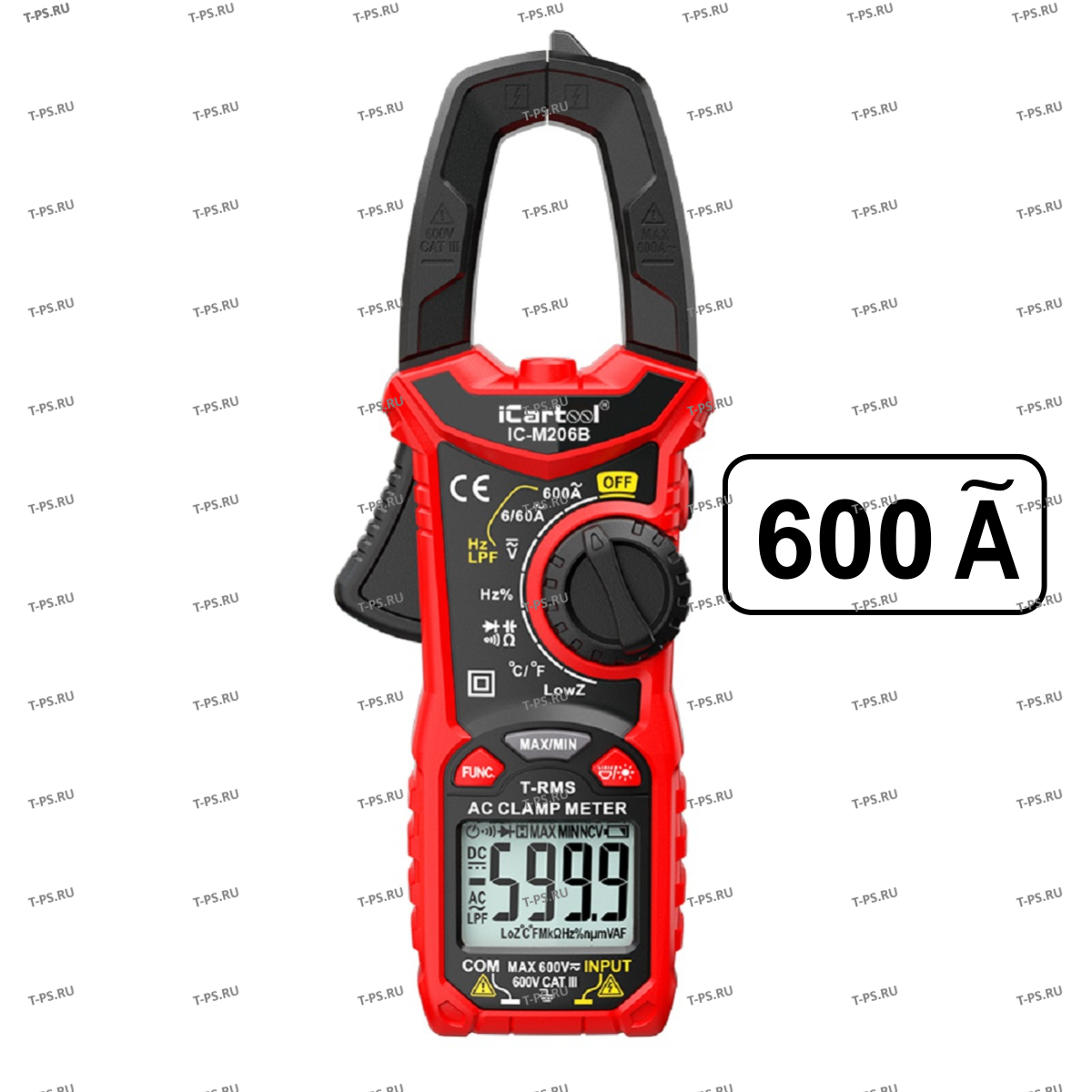 IC-M206B - высокочувствительные цифровые токоизмерительные клещи с функцией мультиметра. Устройство имеет широкий функционал: измерение переменного тока, сопротивления, емкости, постоянного/переменного напряжения, даже при низком сопротивлении (функция LowZ) и многое другое. С помощью этих клещей вы сможете бесконтактно определить напряжение проверить целостность цепи. Прибор демонстрирует максимально точные показания благодаря измерению TrueRMS. Особенности токовых клещей IC-M206B: Измерение среднеквадратического значения True RMS Измерение напряжения при низком сопротивление LowZ Бесконтактное измерение переменного напряжения NCV Максимальный диаметр проводника 26 мм Двухцветная подсветка экрана - сигнализирует о высоком напряжении и токе Рейтинг безопасности: EN61010-1,-2-030 EN61010-2-033, EN61326-1 CAT III 600 Наличие фонаря позволяет работать в помещениях с без освещения Дисплей 6000 отсчетов Регистрация пиков - MAX и MIN значения во время измерения С помощью токовых клещей IC-M206B вы сможете: Измерить переменный ток Измерить постоянное и переменное напряжение Прозвонить проводку Определить емкость Замерить сопротивление Сделать диодный тест Определить фазу Дополнительные функции IC-M206B: Бесконтактное обнаружение напряжения (NCV) Измерение температуры Режим измерения напряжения при низком сопротивлении (LowZ) Регистрация максимального и минимального измеряемого значения Стоп-кадр: фиксация текущего показания (HOLD) Технические характеристики: Постоянное напряжение Переменное напряжение Переменный ток Сопротивление Прозвонка: Световая и звуковая индикация Определение емкости Диодный тест Бесконтактный поиск напряжения (NCV): Световая и звуковая индикация Регистрация максимального значения Регистрация минимального значения Измерение среднеквадратического значения (True RMS) Режим измерения напряжения при низком сопротивлении (LowZ) Фильтр нижних частот (LPF) Измерение температуры Фонарик Фиксация текущего показания HOLD Подсветка дисплея: Двухцветная подсветка (белая и оранжевая) Материал корпуса: АБС-пластик Дисплей: ЖК-дисплей с подсветкой Разрядность шкалы: 6000 отсчетов Макс. диаметр проводника: 26 мм Рейтинг безопасности: EN61010-1,-2-030 EN61010-2-033, EN61326-1 CAT III 600V Постоянное напряжение: 600 мВ/6 В/60 В/600 В ±(0.5% + 3) Переменное напряжение: 6 В/60 В/600 В ±(1.0% + 3) Переменный ток: 6 А/60 А/600 А ±(2.5% + 5) Сопротивление: 600 Ом/6 кОм/60 кОм/600 кОм/6 МОм/60 МОм ±(1.0% + 3) Ёмкость: 10 нФ/100 нФ/1 мкФ/10 мкФ/100 мкФ/1 мФ/10 мФ/100 мФ ±(4.0% + 3) Частота: 10 Гц/100 Гц/1 кГц/10 кГц/100 кГц/1 МГц/10 МГц ±(0.5% + 5) Коэффициент заполнения: 1%~99% ±(1.0% + 2) Диапазон измерения температуры: -20°C~1000°C ±(1.0% + 2) Источник питания: 2*1,5 V элемент питания AAА Размер изделия:193x73x34 мм Вес изделия: 260г