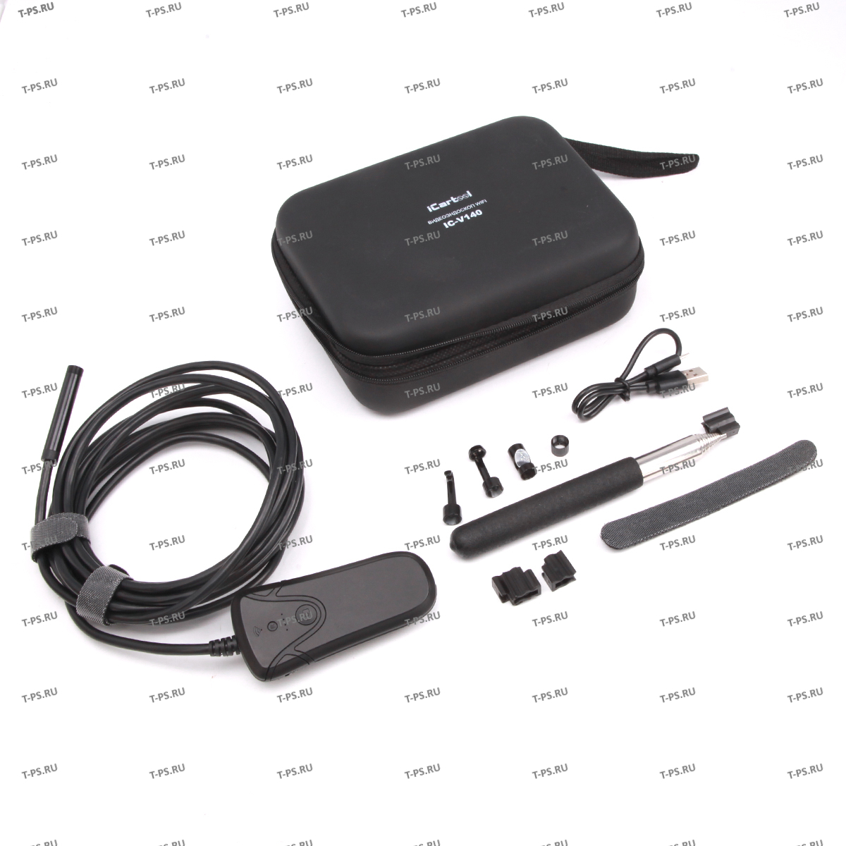 Компактный Wi-Fi видеоэндоскоп iCartool IC-V140 обеспечивает качественную съемку с заявленным разрешением HD 1280х720 и углом обзора в 70 градусов. Прибор позволяет вывести картинку исследуемой области на экран любого смартфона или планшета. Имеет максимальную совместимость с различными устройствами на базе ОС IOS / Android. В комплект прибора входит телескопический удлинитель и крепления для инспектирования мест, где требуется жесткий зонд. Полужесткий зонд диаметром 8 мм и длиной 3,5 метра имеет влаго и пылезащиту IP 67. Встроенный аккумулятор обеспечивает 2,5 часа непрерывной съемки. Особенности IC-V140 Передача изображения посредством встроенного Wi-Fi модуля Возможность записи фото и видео одной кнопкой Разрешение снимков HD 1280х720 (приложение позволяет сохранять фото в разрешении 1920х1080) Длина зонда 3,5 метра LED подсветка с 8-ю белыми светодиодами Работа до 2,5 часов от собственного аккумулятора Телескопический удлинитель длиной 127 см в комплекте позволяет инспектировать места, где требуется жесткий зонд Фокусное расстояние от 4 см Широкий угол обзора 70° Преимущества IC-V140 Сохранение снимков с разрешением FullHD позволяет просматривать изображения даже на большом экране Объектив имеет защиту IP67 - устойчив к попаданию влаги и пыли, что гарантирует надежность и долгий срок службы Индикация уровня заряда Работа с IOS / Android Плавное управление интенсивностью подсветки при помощи регулировочного колеса Зарядка через USB кабель (входит в комплект) В комплект входят дополнительные насадки для расширения возможностей видеоэндоскопа: магнит, зеркальце, крючок, насадка с резиновым уплотнителем для лучшей герметичности камеры Жесткий кофр для хранения/ переноски Высокое качество прорисовки исследуемых деталей и узлов Широкий спектр применения: диагностика и ремонт систем кондиционирования и отопления салона оценка состояния скрытых полостей кузова – ланжероны, пороги, стойки – для оценки состояния подержанных автомобилей диагностика цилиндров поршневой группы двигателя в промышленности для инспектирования машинного оборудования и производственных линий для объектов ЖКХ при инспектировании вентиляций, механизмов без разборки и т.п. Технические характеристики: Диаметр зонда: 8 мм Длина зонда: 3,5 м Длина телескопической ручки: от 15 см до 120 см Тип камеры: CMOS Разрешение камеры: 1 Мп Разрешение изображения: 1280x720 Разрешение видео: 640х480 Угол обзора: 70° Фокусное расстояние: 4 - 10 см Подсветка камеры: LED с плавной регулировкой, 8 белых светодиодов Степень защиты: IP67 Формат изображения: JPEG Формат видео: Mp4 Аккумулятор: Встроенный 1000 мАч Время работы: до 2,5 часов работы Способ зарядки: USB Работает с ОС: IOS/Android Тип подключения: Wi-Fi Температура эксплуатации: 0 °C + 50 °С Комплектация: Видеоэндоскоп WIFI IC-V140 Телескопический держатель Крючок Магнит Защитный колпачок Кабель для зарядки Зеркало Чехол Инструкция по эксплуатации
