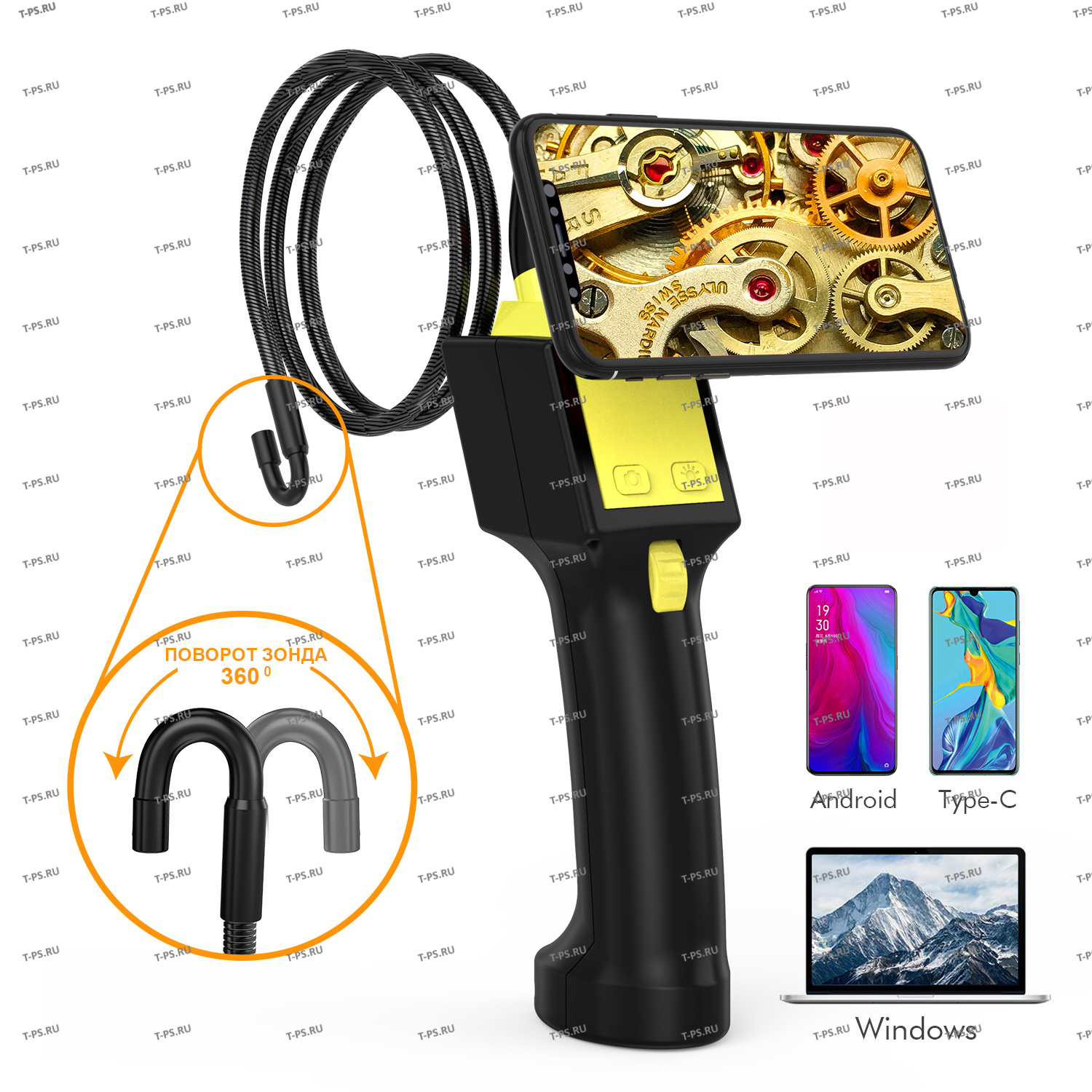 Управляемый видеоэндоскоп iCartool IC-V8052W с поворотной камерой на 360° и разрешением видеоматрицы 1Мп. Тип зонда - полужесткий, с эффектом памяти формы, имеет диаметр 8,5 мм и длину 0,8 метра. Видеоэндоскоп позволяет передавать изображения на смартфон или компьютер посредством USB соединения. В комплект входит многофункциональный USB кабель, при помощи которого можно подключить эндоскоп к различным устройствам с ОС Android/ Windows/ Mac. Для крепления смартфона используется площадка с мощным магнитом. Регулировка яркости подсветки, а также запись фото и видео производится при помощи горячих клавиш на рукояти прибора в одно касание. Преимущества IC-V8052W - Двухсторонняя артикуляция подвижной части на 360° в каждую сторону. - Фиксация подвижной части в любом положении. - Широкий угол обзора 70°. - Высокое разрешение фото и видео 1280 × 720. - Длина подвижной части 35 мм. - Фокусное расстояние от от 2 до 6 см. - LED подсветка с 6-ю белыми светодиодами, 5 режимов яркости. Особенности IC-V8052W - Самый доступный в своем классе. - Высокая прорисовка исследуемых деталей и узлов. - Объектив имеет защиту IP67 - гарантирует надежность и долгий срок службы. - Широкий спектр применения - инспектирование различных узлов в автосервисе, в промышленности, ЖКХ и т.п. Важно: ваш Android-смартфон/планшет должен поддерживать функцию OTG и подсоединение внешней камеры. Технические характеристики Наименование Значение Артикуляция двухсторонняя Угол поворота камеры 360° (180° в каждую сторону) Тип камеры CMOS Разрешение камеры 1 Мп Разрешение изображения 1280 × 720 Разрешение видео 1280 × 720 Угол обзора 70° Диаметр зонда 8,5 мм Длина зонда 0,8 м Фокусное расстояние от 2 до 6 см Подсветка камеры 6 белых светодиодов 5 режимов яркости Степень защиты IP67 Формат изображения JPEG Формат видео AVI Длина подвижной части 35 мм Радиус изгиба 40 мм Тип подключения USB/microUSB/typeC Работает с ОС Android/Windows/Mac Рабочая температура От -20 °C до + 60 °C
