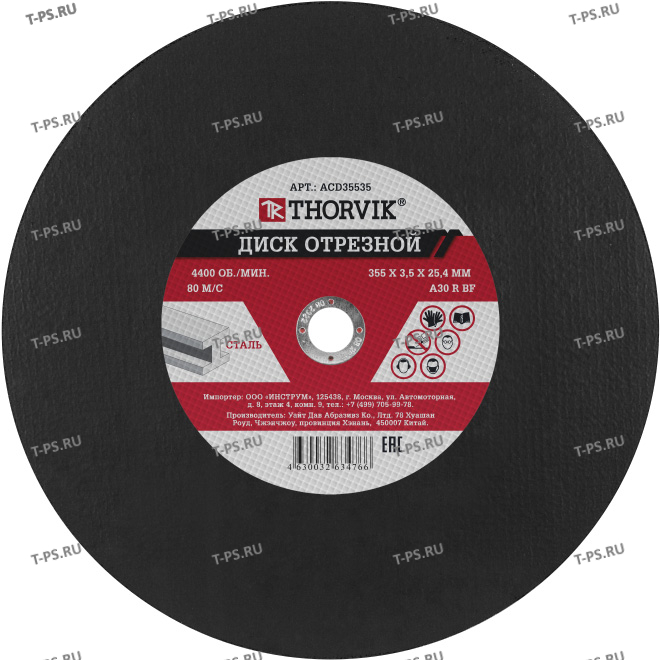 ACD35535 Диск отрезной абразивный по металлу, 355х3.5х25.4 мм