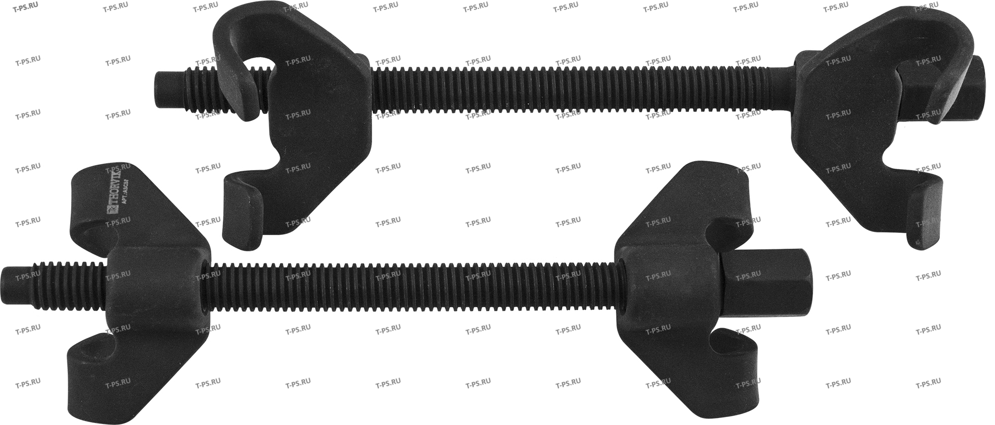 Описание Стяжки пружин амортизационных стоек 370 мм состоящий из 2х предметов. Предназначены для производства работ по обслуживанию упругих элементов подвески легковых автомобилей. Закаленная легированная хромомолибденовая сталь, защитное фосфатированное покрытие, компактные размеры, позволяющие использовать инструмент в ограниченном пространстве, высота 370 мм. Область применения Применяется для удержания спиральных пружин в сжатом состоянии и сжатия пружин подвески автомобиля до 2 т. При их замене.