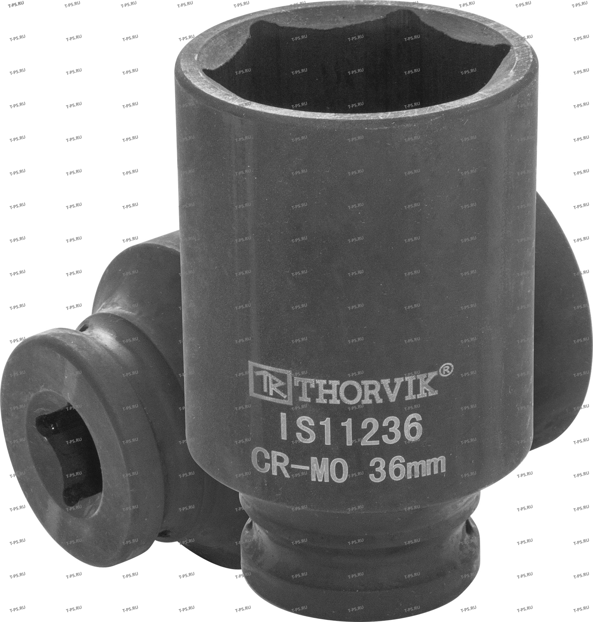Описание Головка торцевая ударная глубокая 1/2DR, 36 мм. Торцевые головки Thorvik изготовлены с применением технологий, позволяющих передавать усилия, превышающие расчетные по современным стандартам на 30%. Широкий диапазон размеров, типов и профилей, высокая точность обработки, качественная хромомолибденовая сталь (Cr-Mo) и устойчивое фосфатированное покрытие делают инструмент надежным и долговечным. Торцевые головки Thorvik являются основной для создания систем сборного слесарно-монтажного инструмента. Имеет отверстие для фиксирующего штифта и выточка для уплотнительного кольца. Область применения Служит для начального откручивания крепежных деталей с 6-гранным рабочим профилем. Позволяет прилагать максимально допустимые для торцевых головок рабочие нагрузки. К минусам можно отнести сложность с позиционированием на крепеже, что при наличии трещоточной рукоятки не имеет значения. Размеры