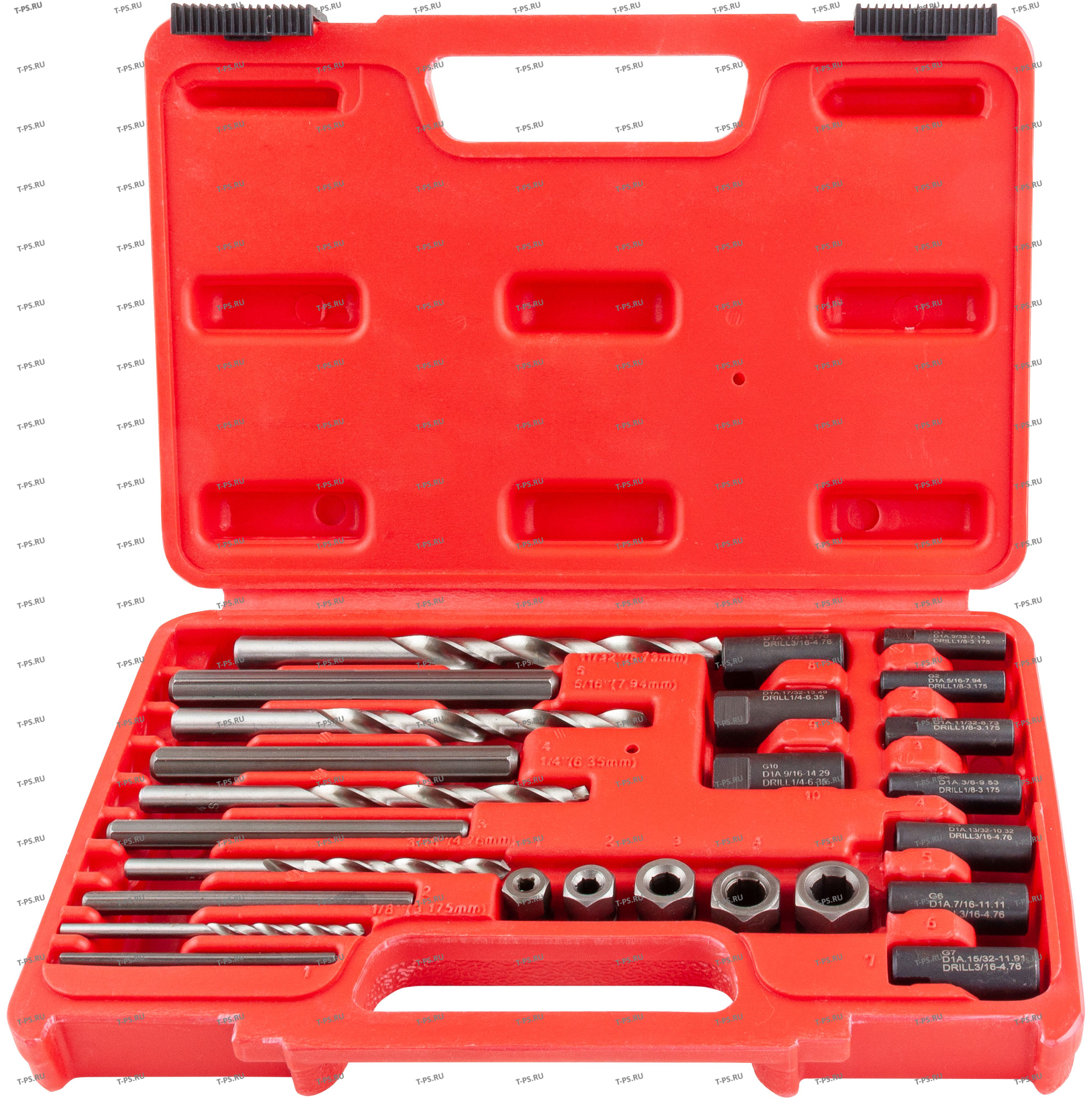 Описание Набор комплектуется монолитными сверлами из быстрорежущей стали и направляющими втулками (кондукторами) для центрирования при сверлении вспомогательного отверстия. Область применения Набор экстракторов стержневого типа предназначен для демонтажа резьбовых шпилек и болтов диаметрами от 5 до 16 мм. Изделия, входящие в комплект позволят без повреждения резьбы удалить утопленную или выступающую часть сломанного резьбового соединения. Рекомендации по выбору сверла