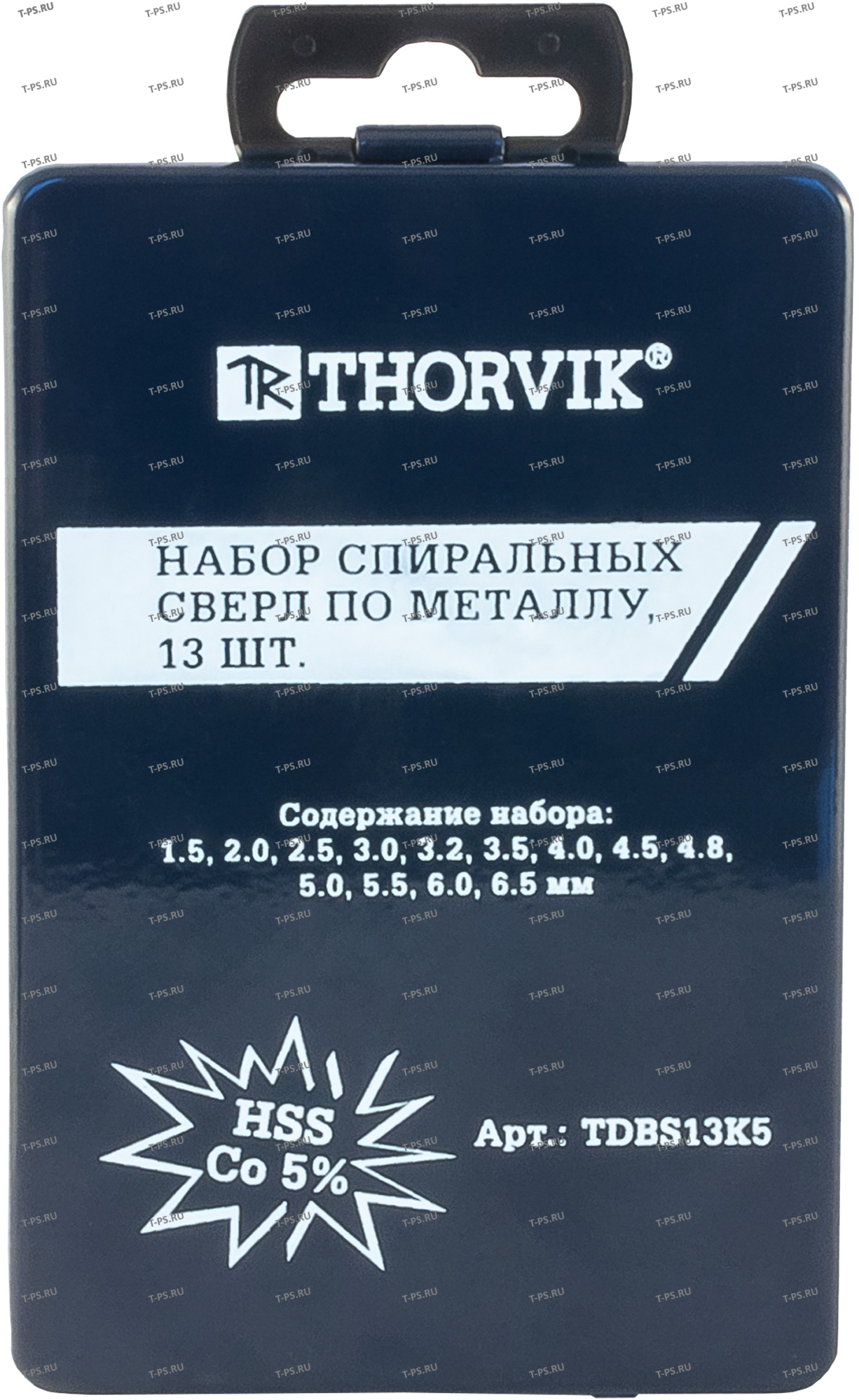 Описание Набор спиральных сверл по металлу HSS Co в металлическом кейсе, d1.5-6.5 мм, 13 предметов. Спиральные сверла по металлу Thorvik изготавливаются из быстрорежущей инструментальной стали с высоким содержанием легирующих элементов, что обеспечивает возможность обрабатывать материалы с высокой твердостью. Геометрия заточки сверл позволяет с высокой эффективностью обрабатывать большинство известных материалов, таких как чугуны, углеродистые и конструкционные стали, нержавеющие и жаропрочные сплавы. Спиральные сверла Thorvik изготовлены по стандарту DIN 338 тип N и полностью соотвествуют техническим условиям ГОСТ 10902-77. Область применения Применяется для большинства известных материалов, таких как чугуны, углеродистые и конструкционные стали, нержавеющие и жаропрочные сплавы. Размеры
