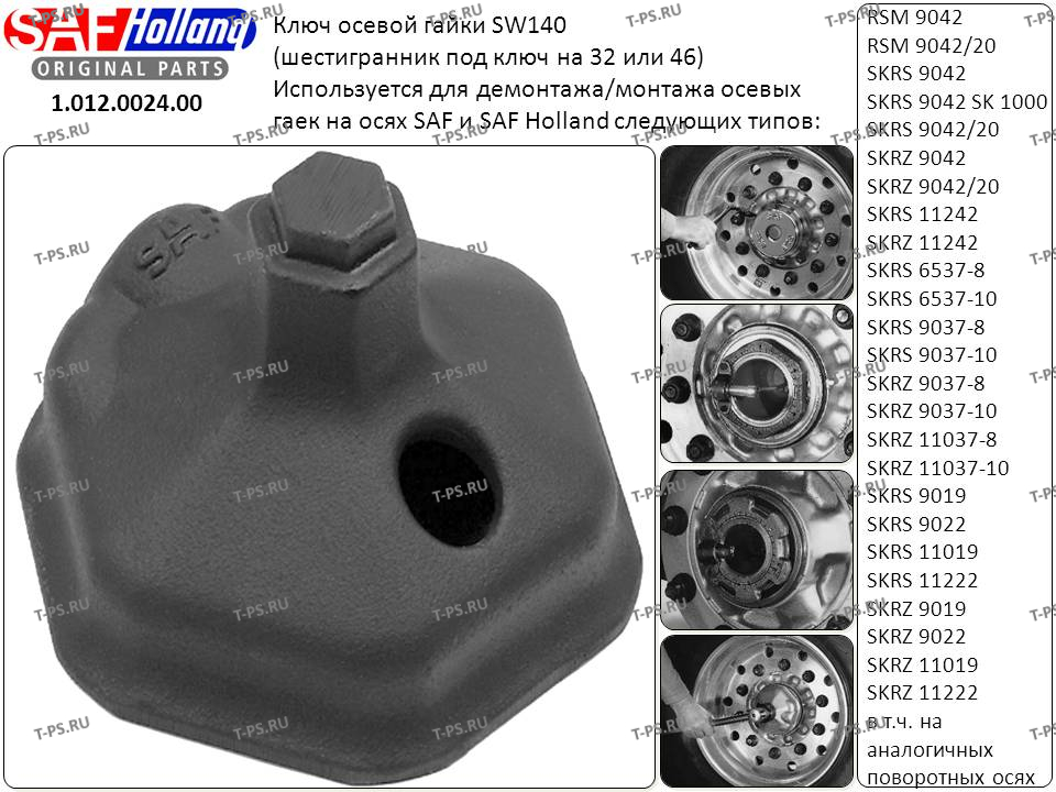 Применение шестигранной головки SAF для типа оси / тормоза: